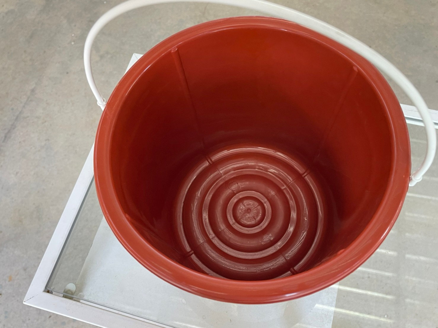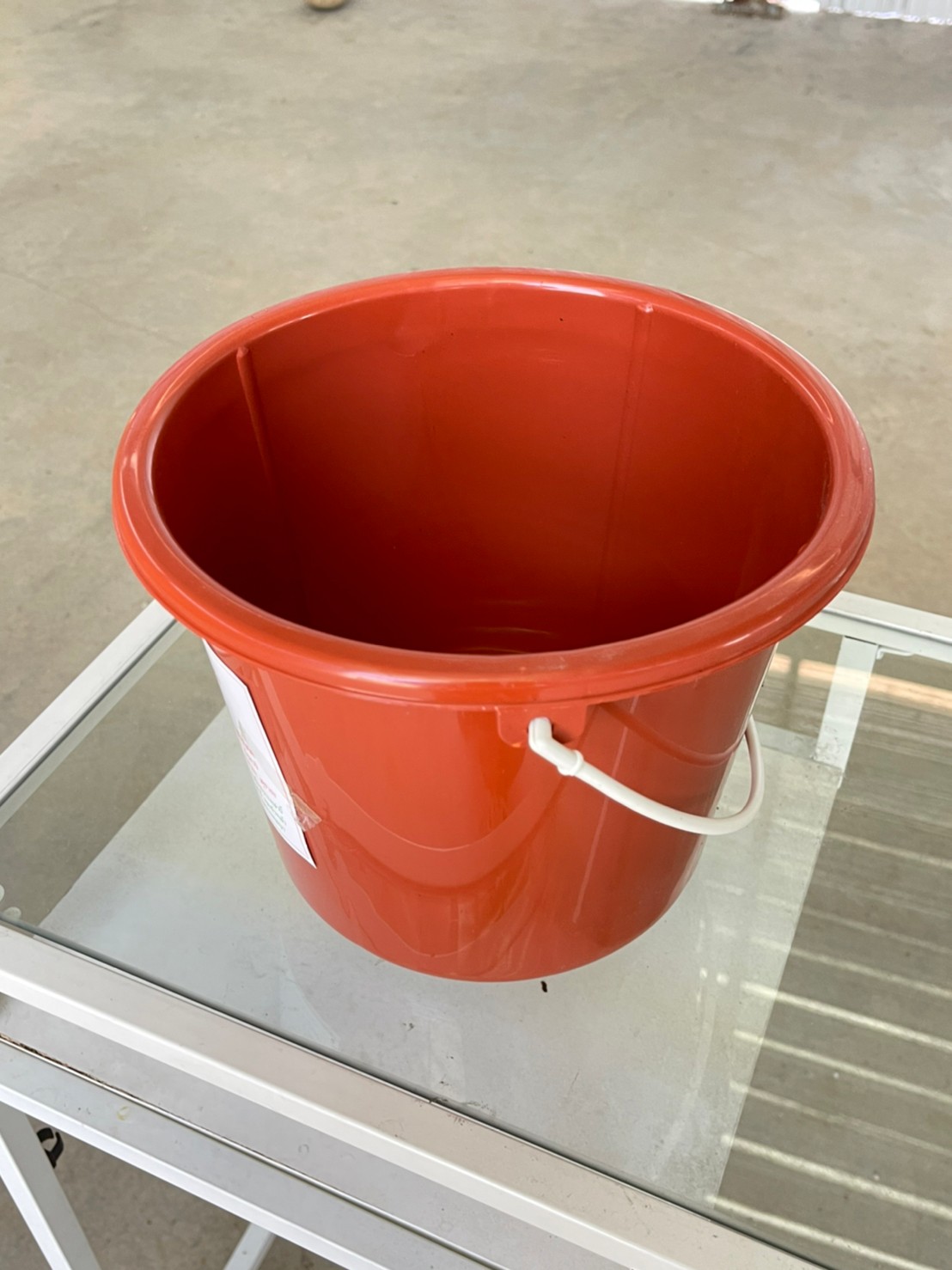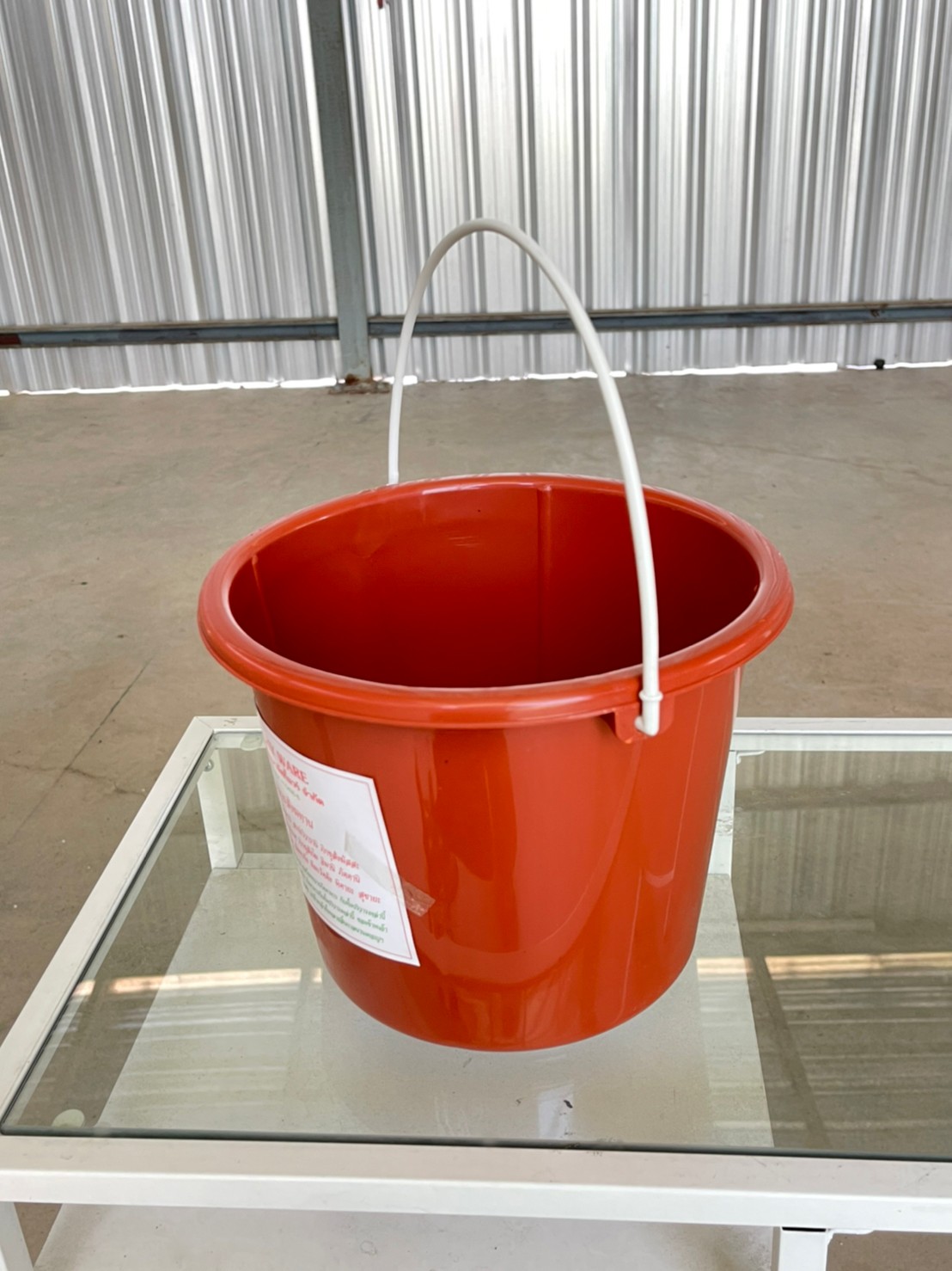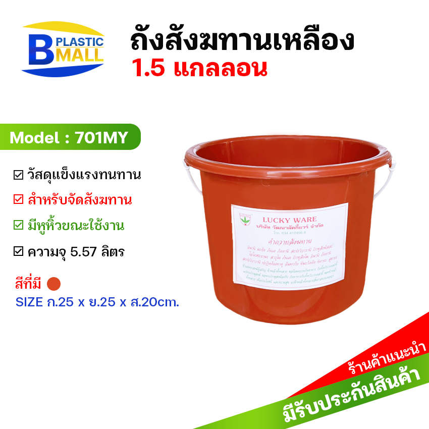 ถังน้ำพลาสติก 1.5 แกลลอน ขนาดกว้าง 25 ซม. สูง 22 ซม. ใช้ใส่น้ำ เป็นถังสังฆทาน