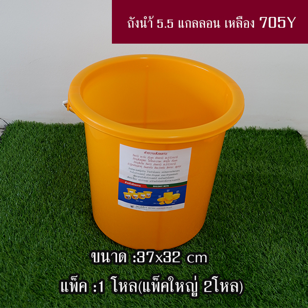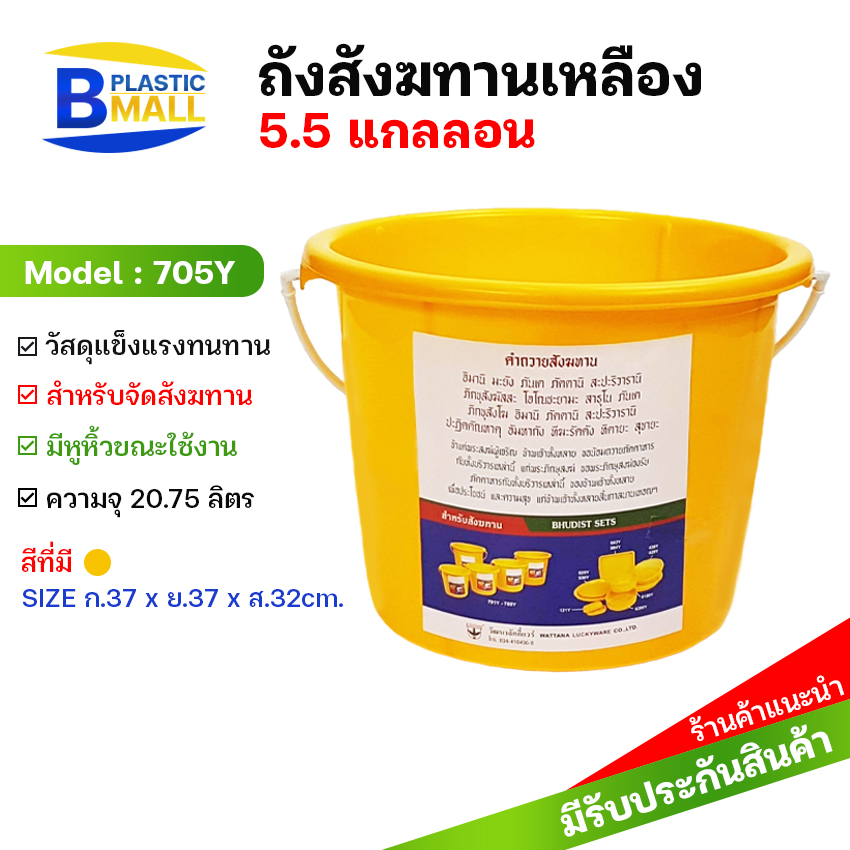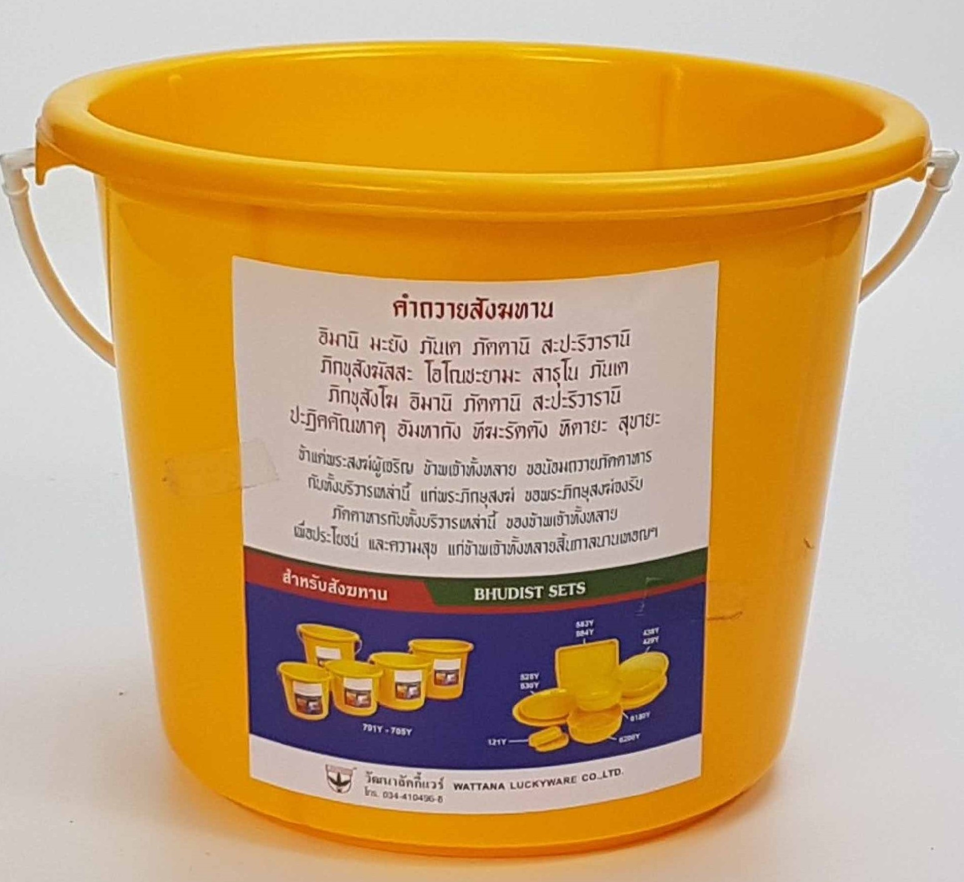ถังน้ำพลาสติก ขนาดกว้าง 35 ซม. สูง 34 ซม. ใช้บรรจุน้ำ เป็นถังสังฆทาน