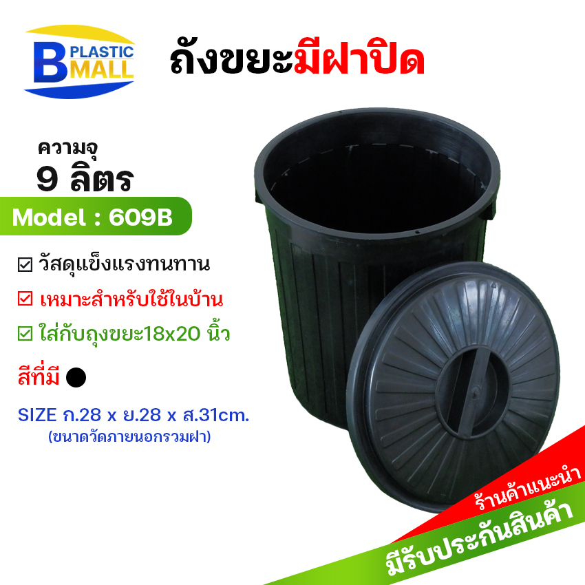 ถังขยะกลมมีฝาปิด 9 ลิตร รหัสสินค้า : 609B ขนาด : 28 X 33 CM. ขนาดบรรจุ : 9 ลิตร จัดเก็บเศษผงที่ต้องการกำจัดเก็บทิ้งให้เป็นที่เป็นทาง สำหรับใส่ขยะ กระดาษ เศษฝุ่นผง วัสดุต่างๆที่ไม่ใช้แล้ว · ขนาดความจุถังมี 8 ลิตร · เหมาะสำหรับถุงขยะ ขนาด 18x20นิ้ว