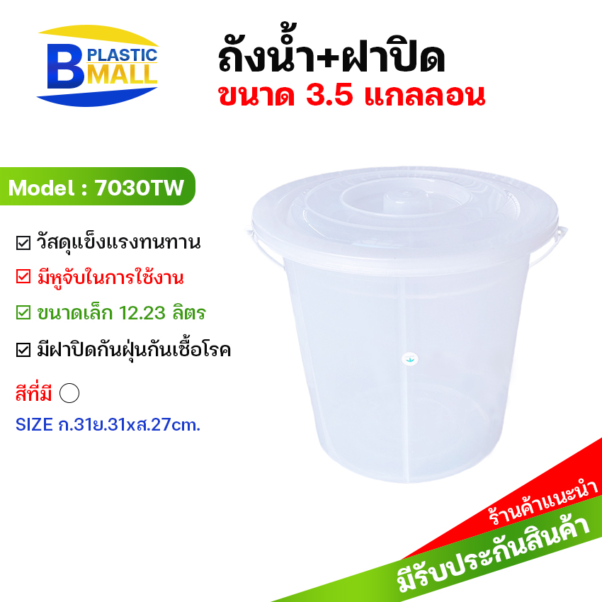ถังน้ำ 3.5 แกลลอน พร้อมฝา ขนาดกว้าง 30 ซม. สูง 28 ซม. บรรจุน้ำ ใส่อาหาร