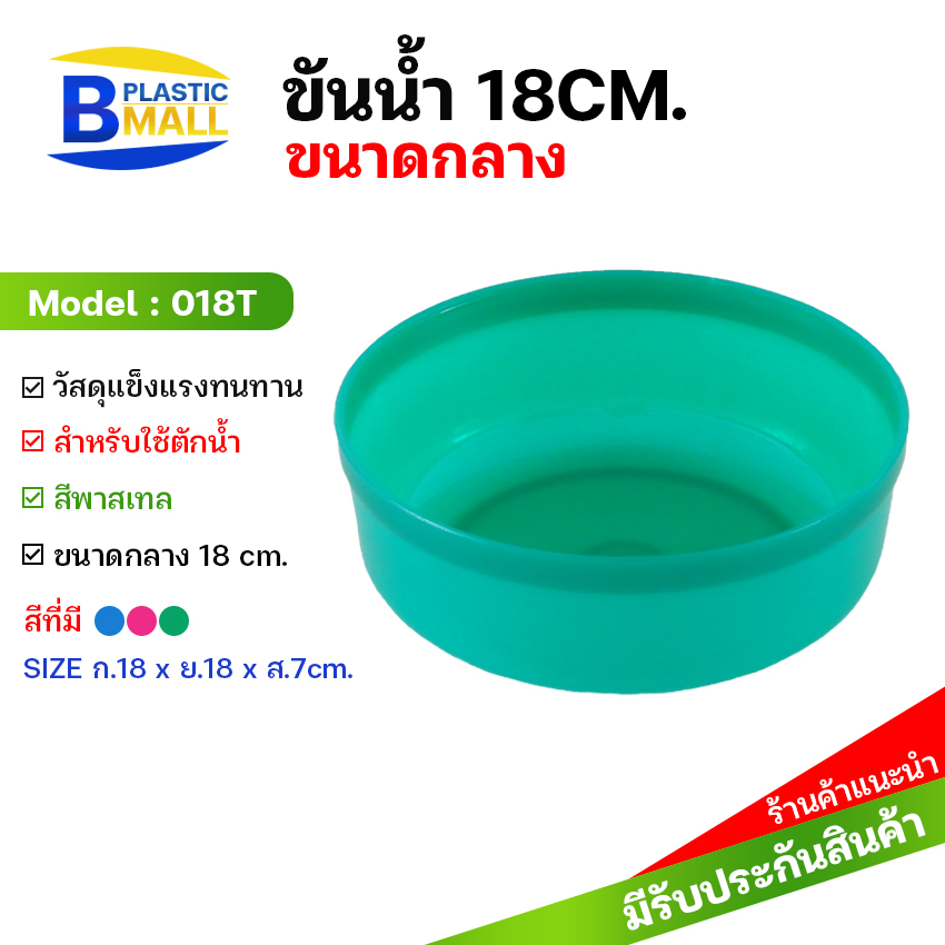 ขันน้ำพลาสติก ขนาดกว้าง 18 ซ.ม. ลึก 6.5 ซ.ม.