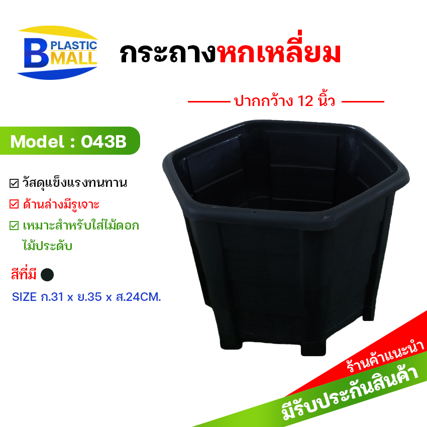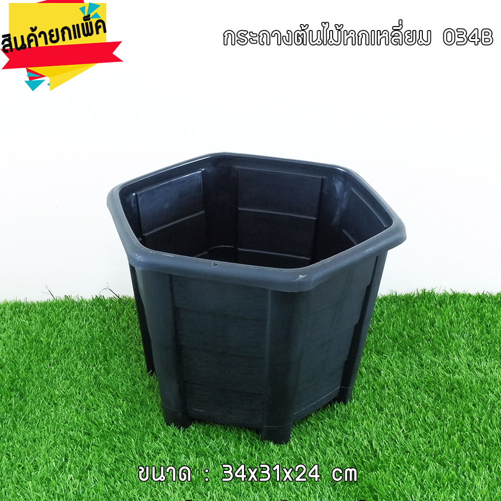 กระถางต้นไม้ หกเหลี่ยม (เจาะรู)