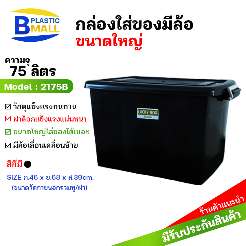 กล่องมีล้อสำหรับเก็บของขนาด 75 ลิตร สีดำ