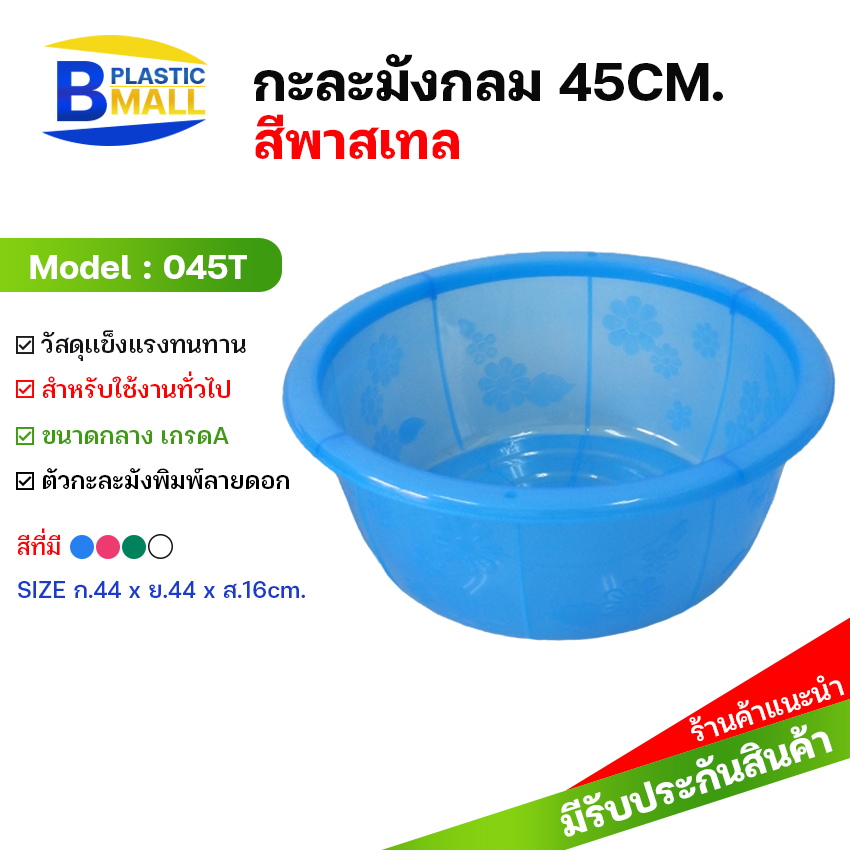 กะละมังพลาสติกกลม ขนาดกว้าง 45 ซม. ลึก 16 ซม. ใช้ซักผ้า ล้างภาชนะ เพาะเลี้ยงสัตว์