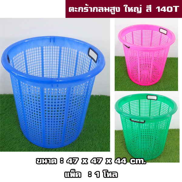 ตะกร้าพลาสติกกลมสูง ใหญ่ ขนาดกว้าง 45 ซม. สูง 49 ซม. ใช้ใส่เสื้อผ้า ใส่ผลไม้ ใส่ของใช้ทั่วไป