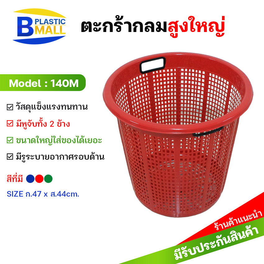 ตะกร้าพลาสติกกลมสูง ขนาดกว้าง 47 ซม. สูง 44 ซม. ใช้ใส่เสื้อผ้า ใส่สิ่งของต่างๆ