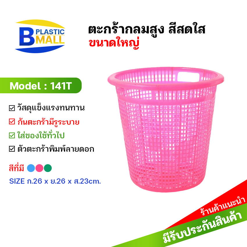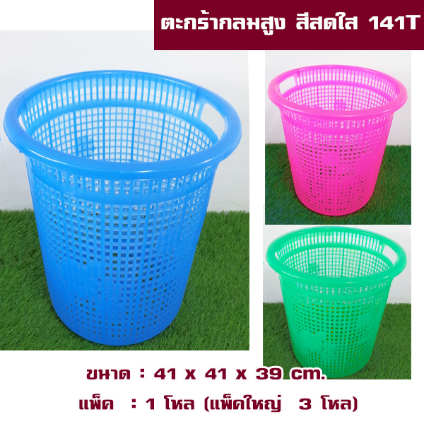 ตะกร้าพลาสติกกลมสูง ขนาดกว้าง 41 ซม. สูง 41 ซม. ใช้ใส่เสื้อผ้า ใส่สิ่งของต่างๆ